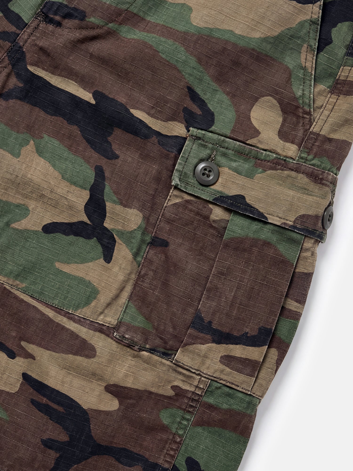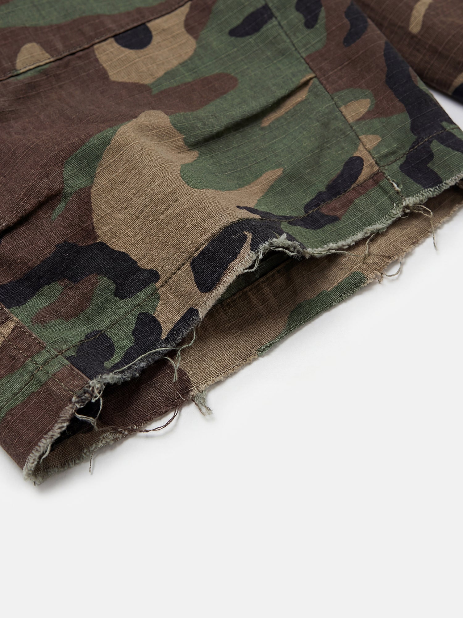 Odolné maskáčové šortky z pevné ripstop bavlny, volného a dlouhého střihu, abyste mohli plynule přecházet z ulice na stezku.