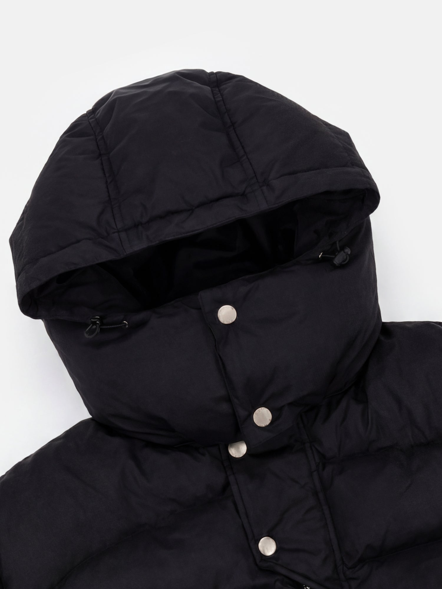 Kapuzendesign mit hohem Kragen für maximale Isolierung und elegante Details.