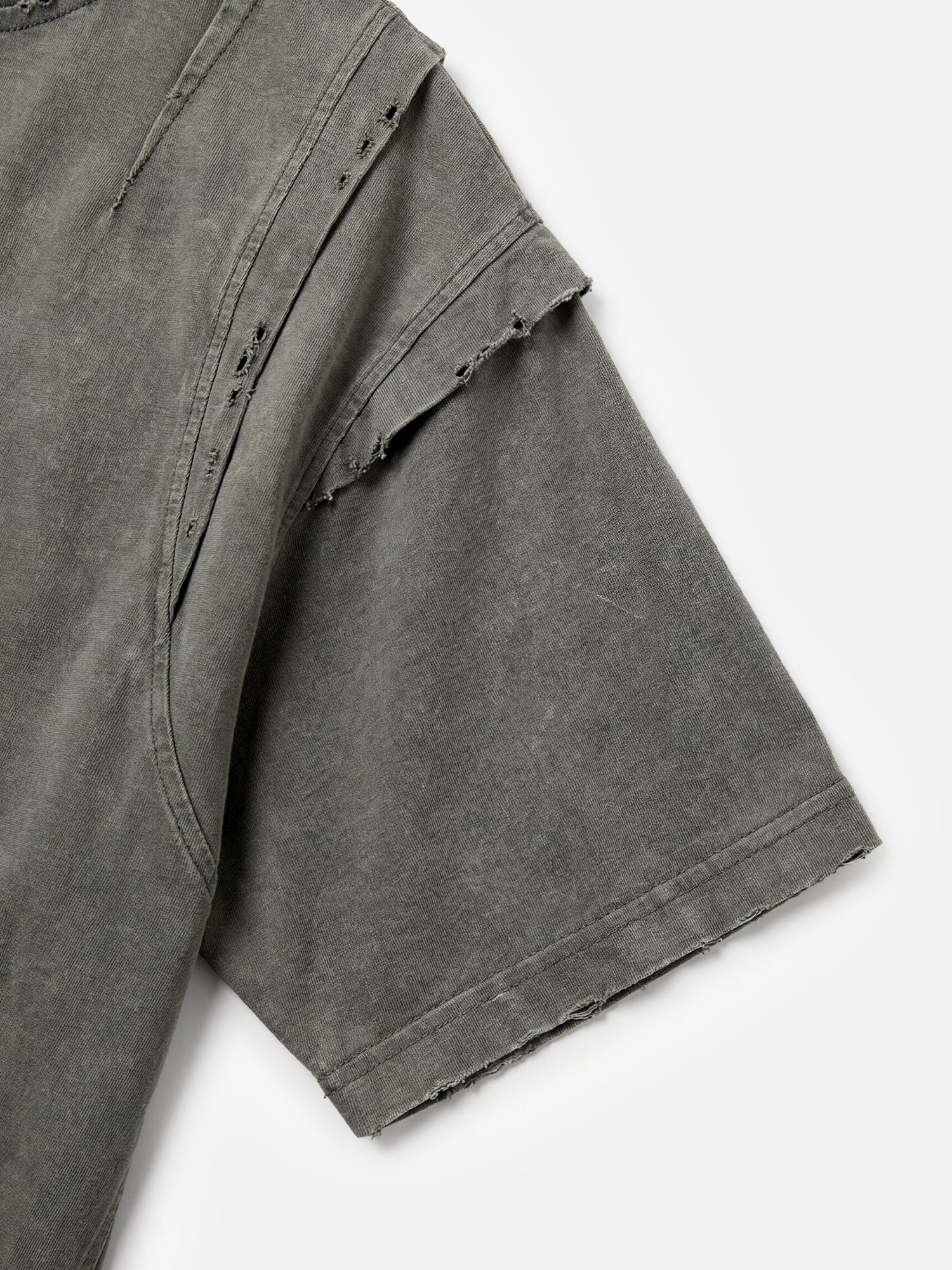 Mehrlagige Schultereinsätze und sichtbare Nähte verleihen diesem gewaschenen T-Shirt Dimension. Für ein entspanntes Tragegefühl konzipiert.