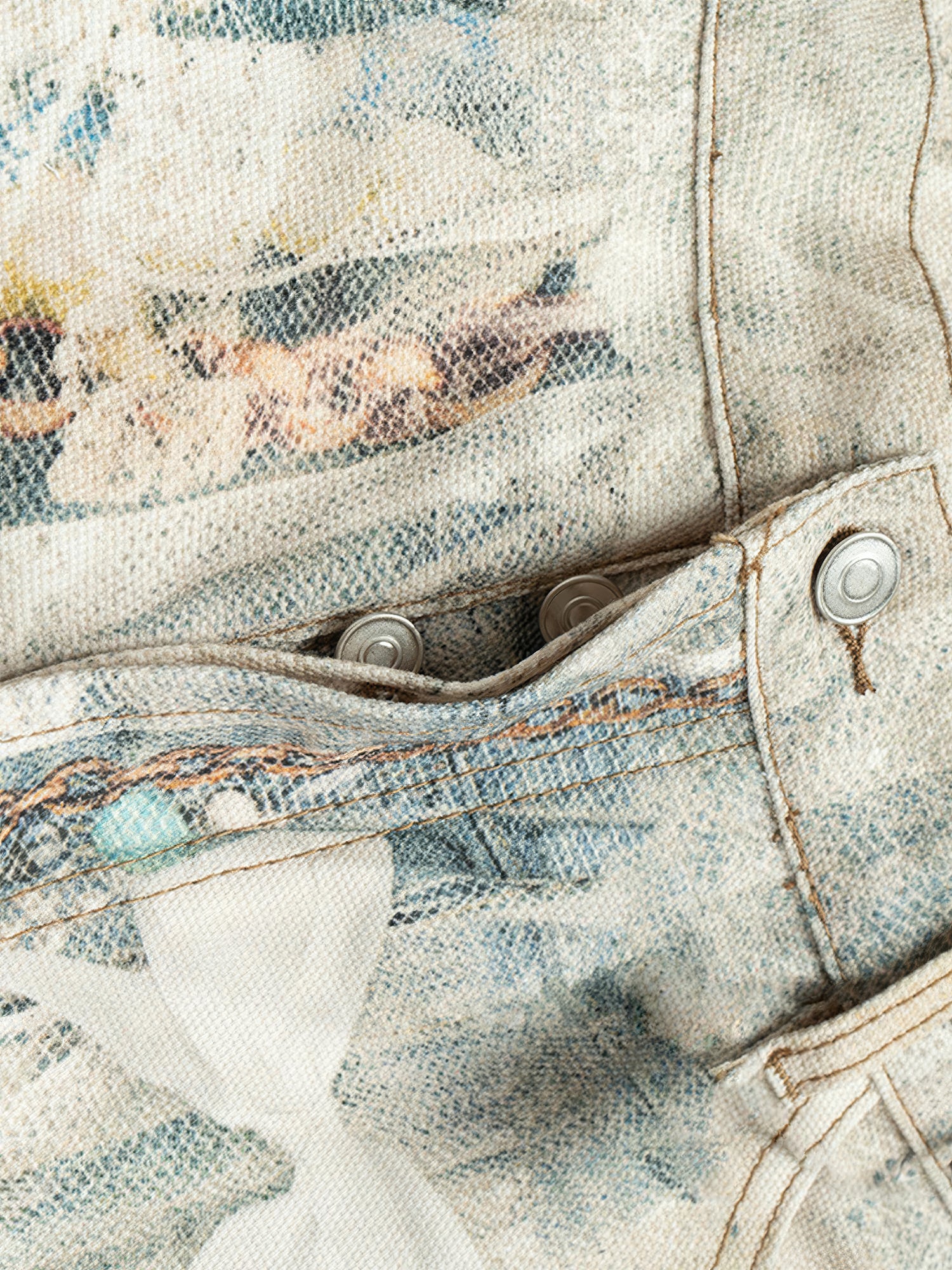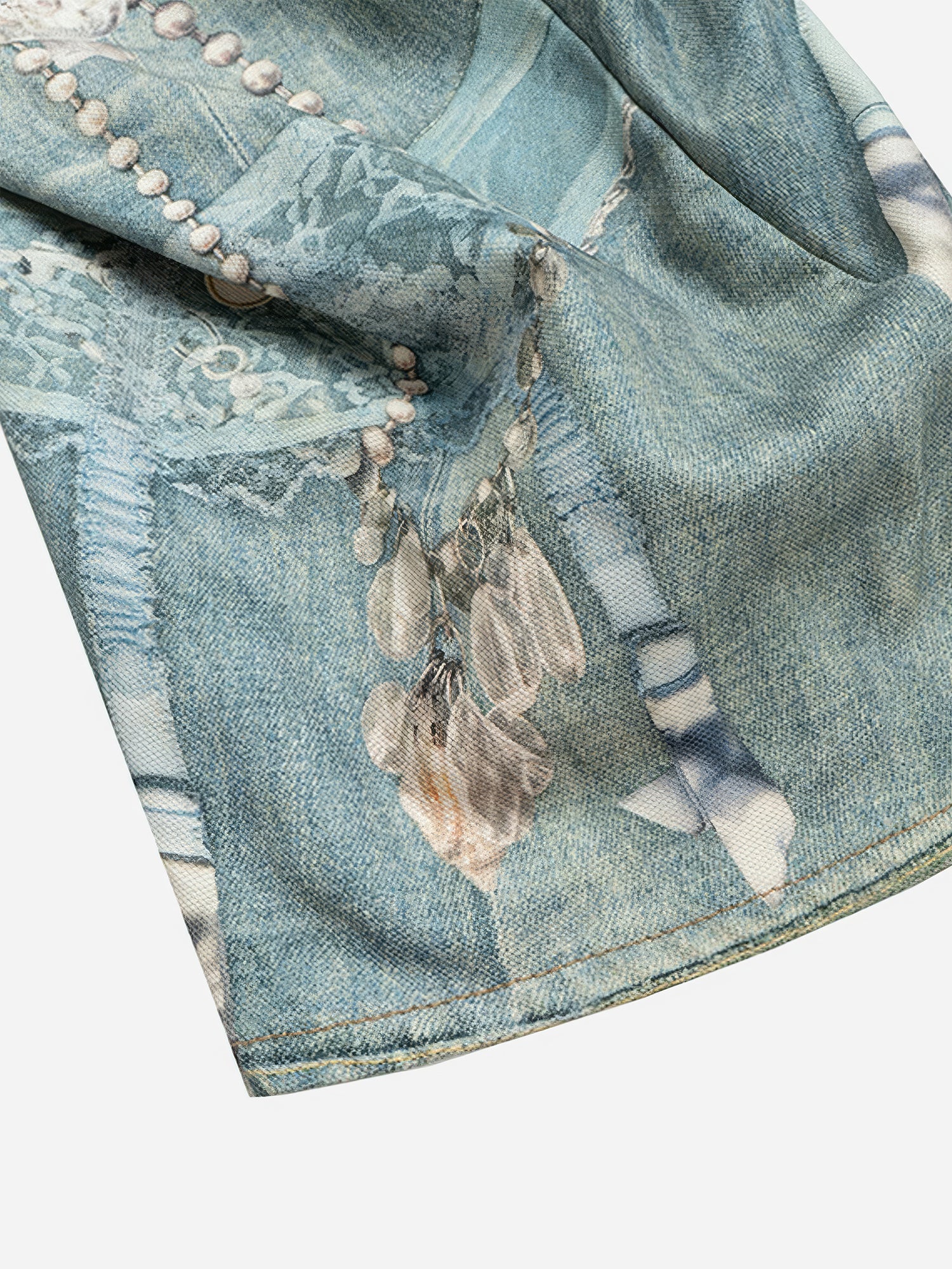 The wide-leg silhouette offers both structure and fluidity, while the soft washed denim ensures all-day comfort. Each detail evokes a handcrafted, expressive aesthetic for the modern creative.