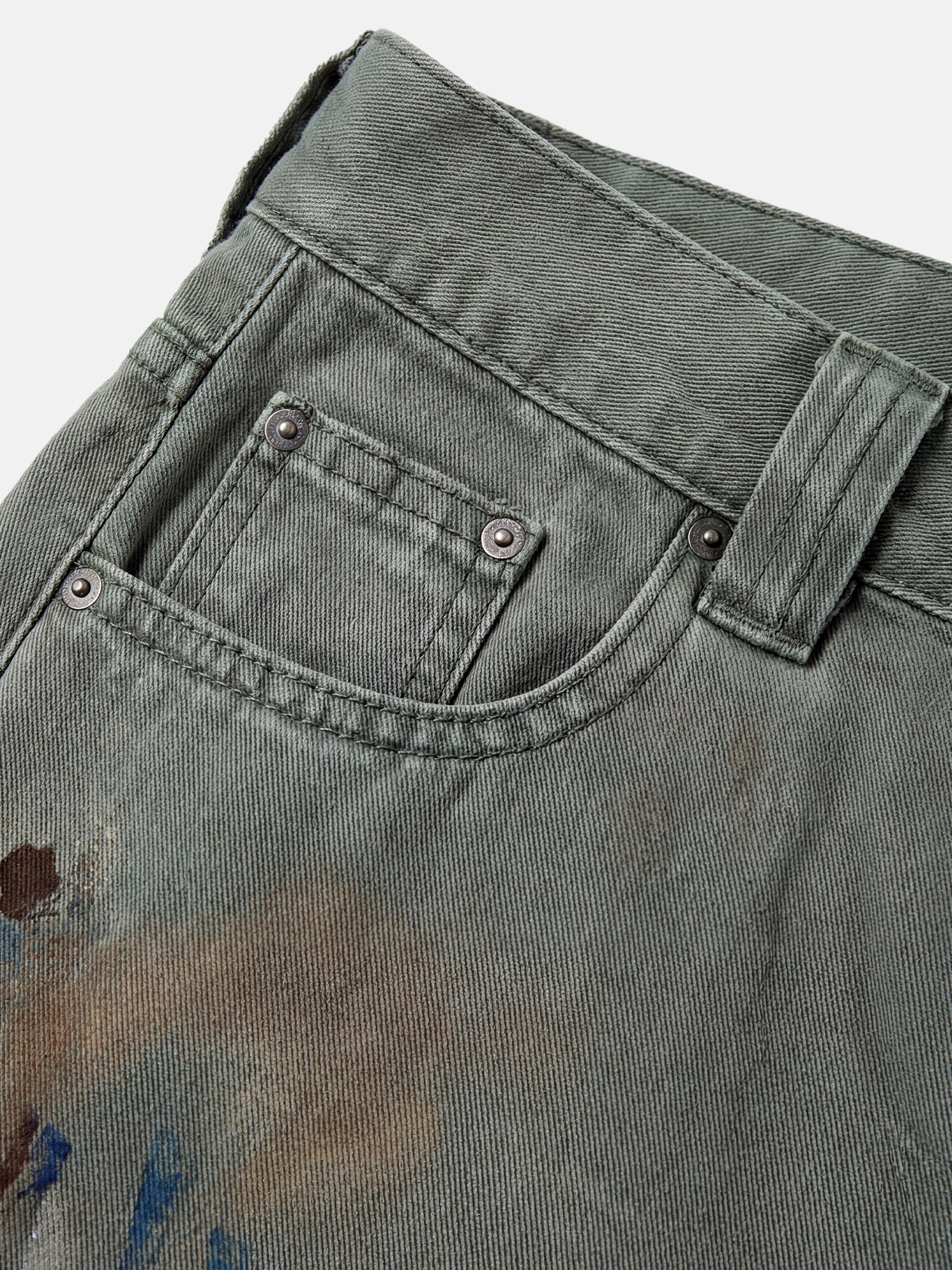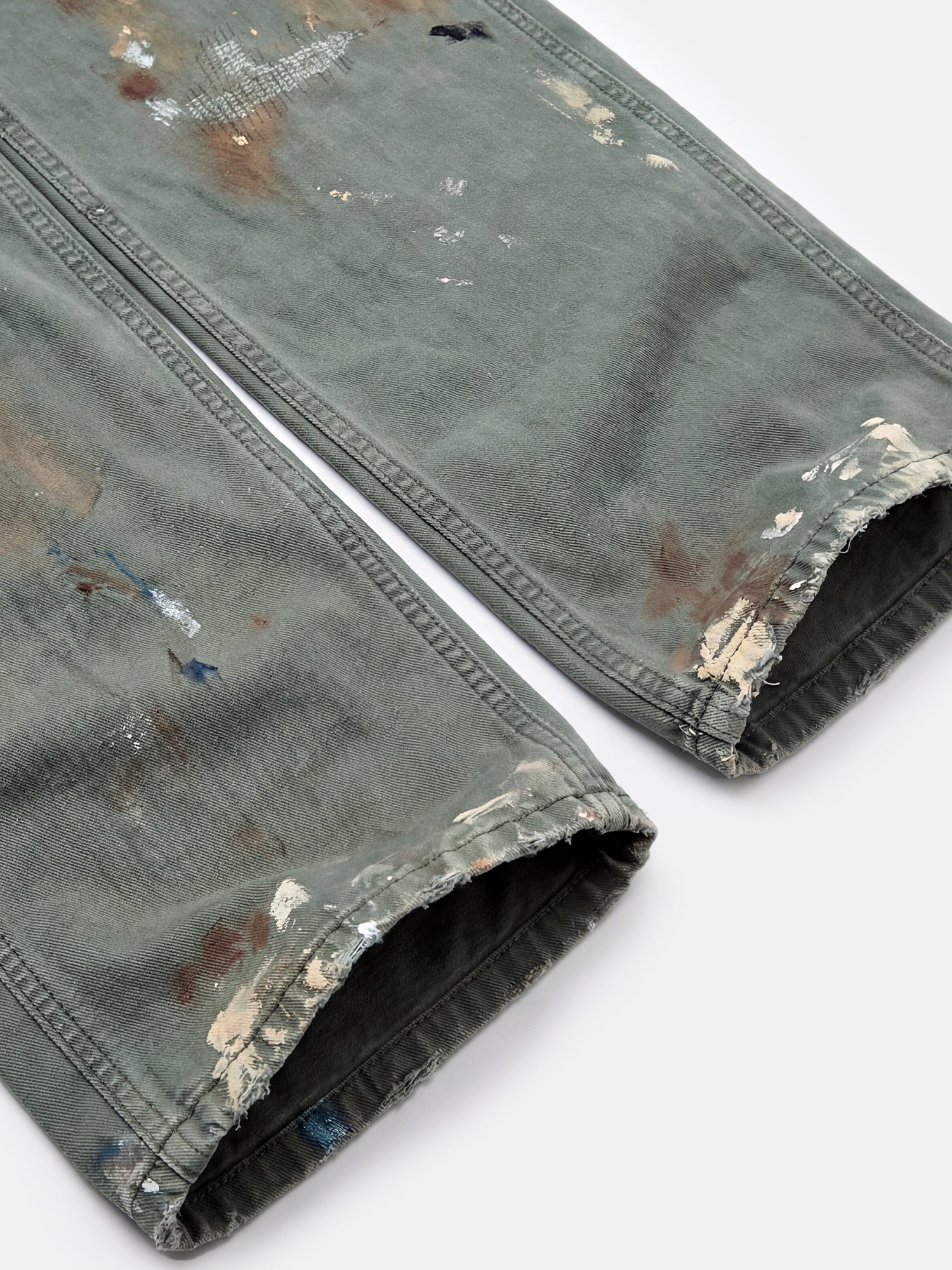 Pantalones cargo holgados con un aspecto desgastado y detalles de salpicaduras de pintura para un estilo robusto.