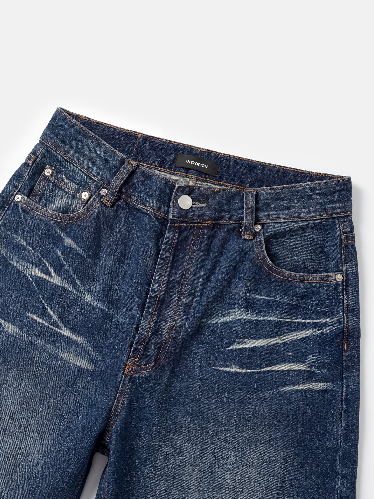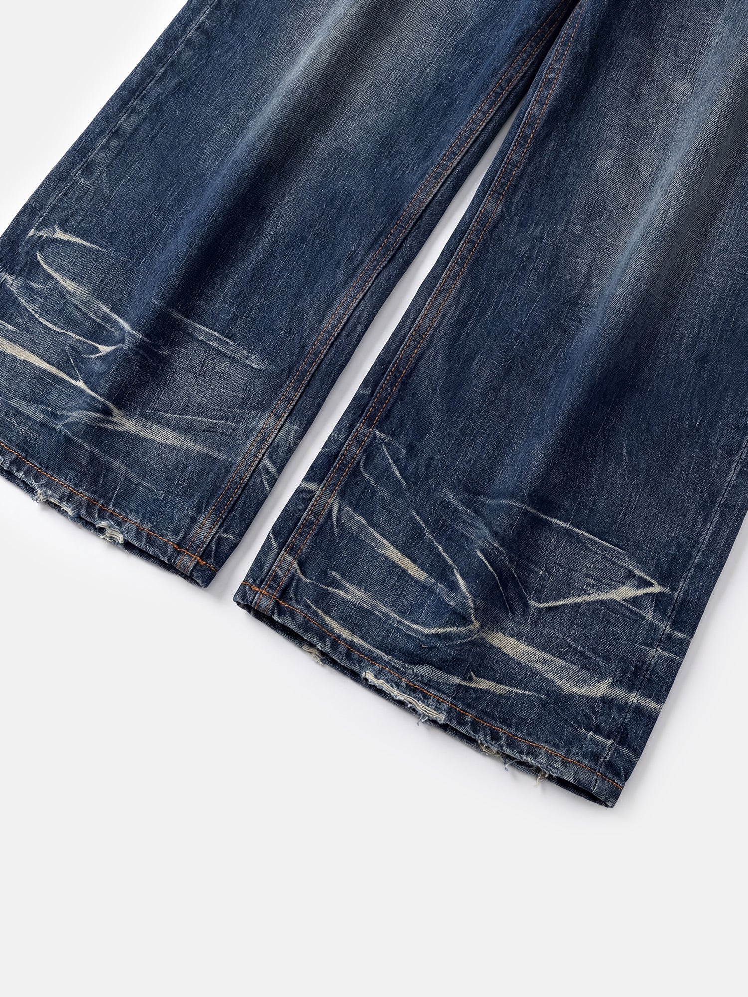 Denim ultra-ampio con lunghezza extra che si allunga sull'orlo, rifinito con lavaggio medio e baffi mossi per un look rilassato.
