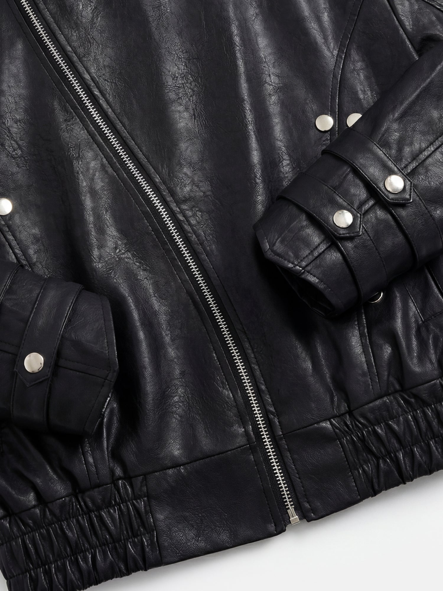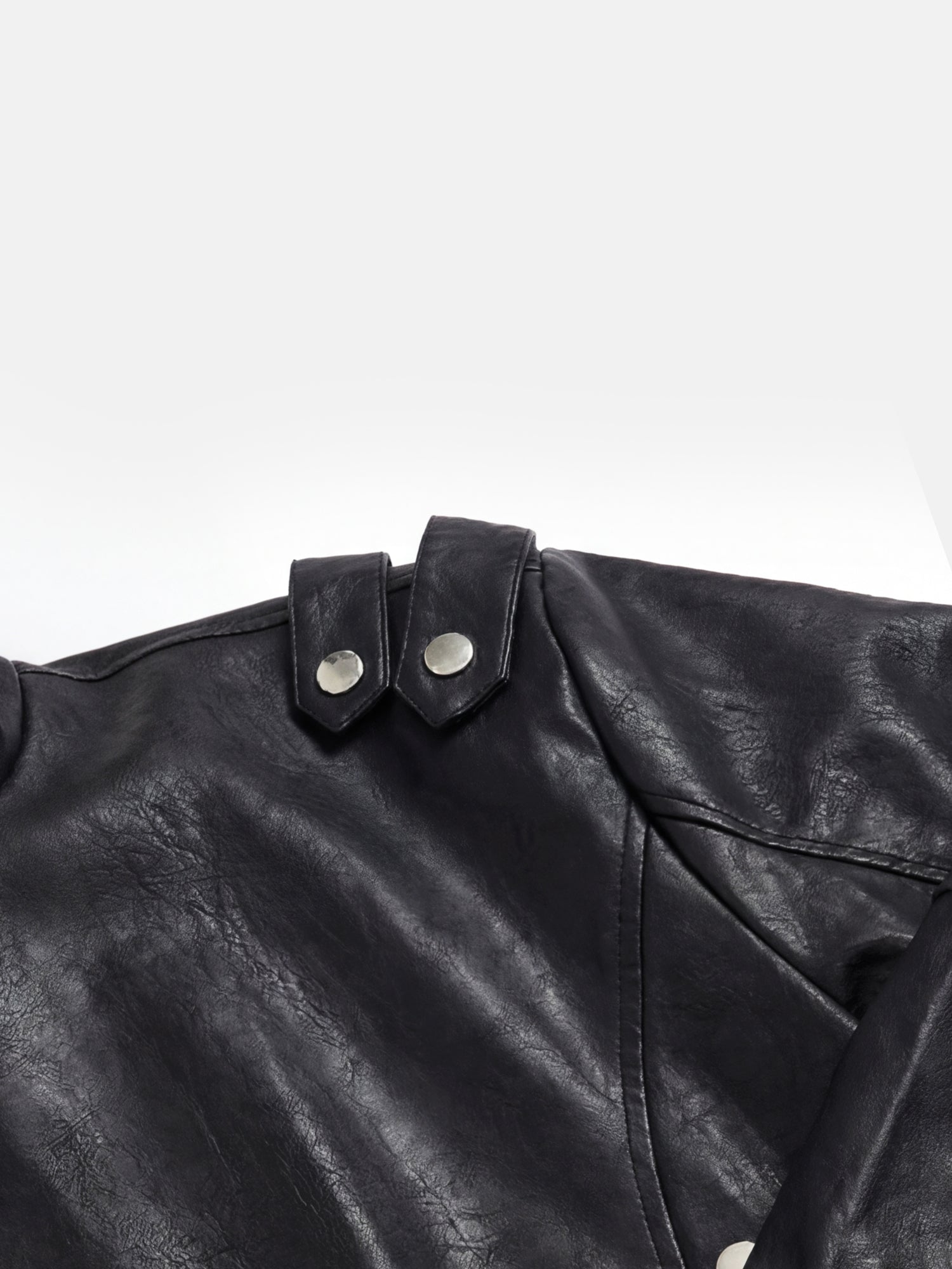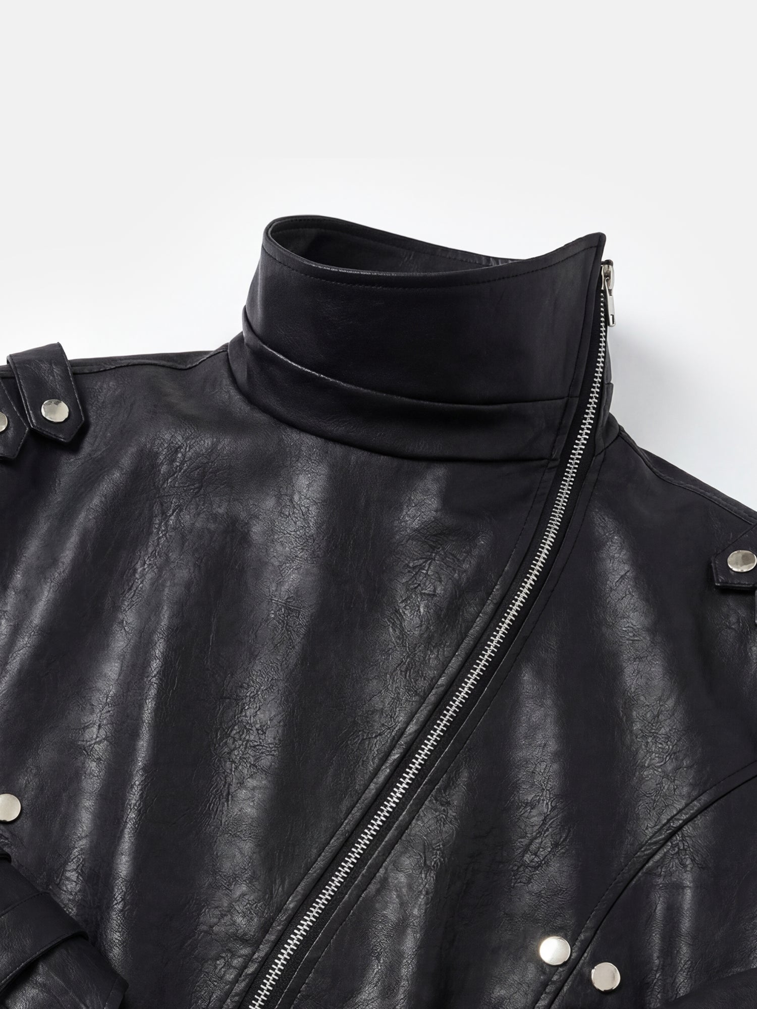 Giacca da motociclista all'avanguardia in pelle testurizzata con cerniera a spirale e collo a imbuto, che conferisce un deciso stile motociclistico a qualsiasi look.