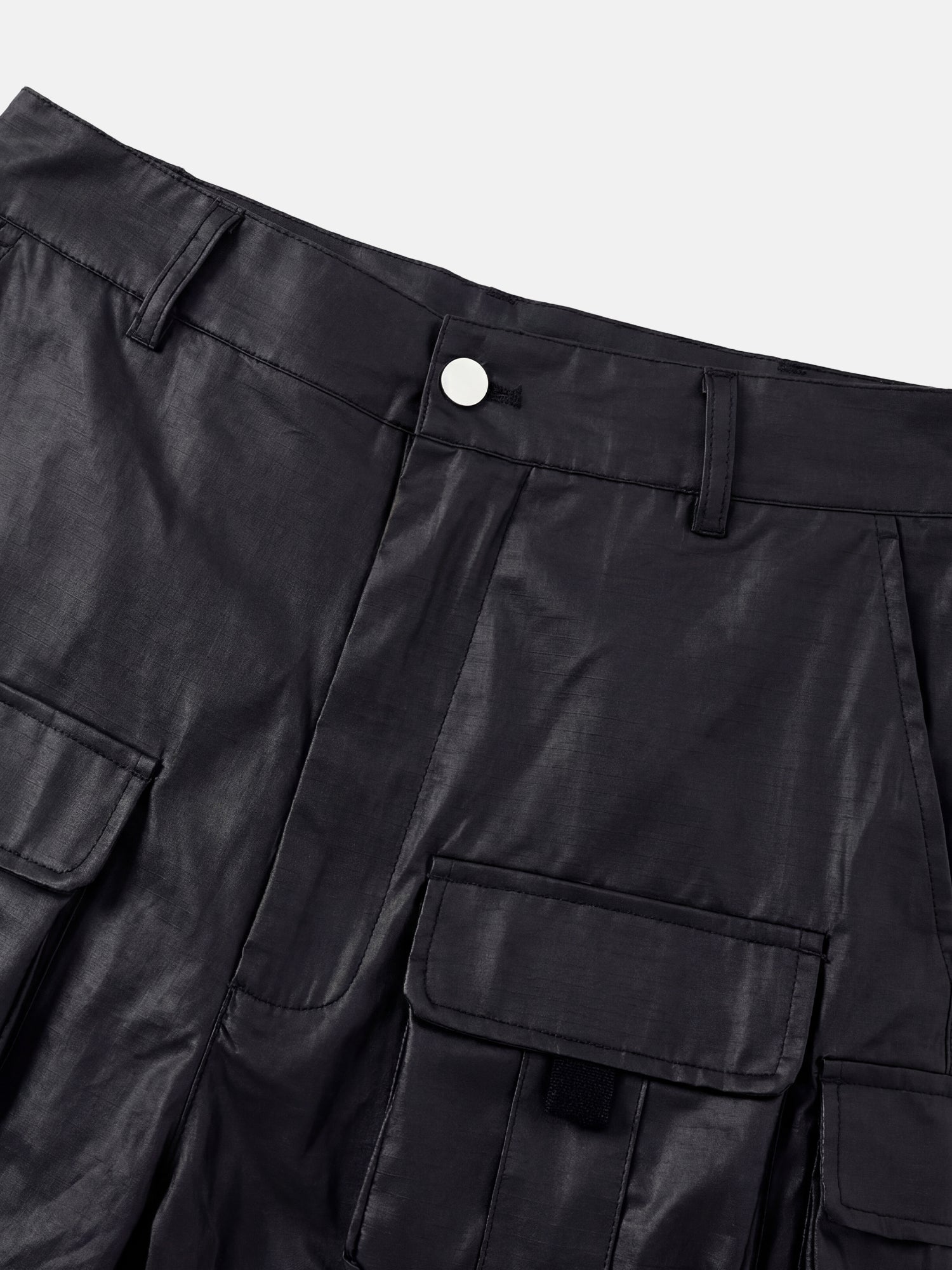 Molteplici tasche con patta e chiusura a cerniera. Guscio leggero e lucido.