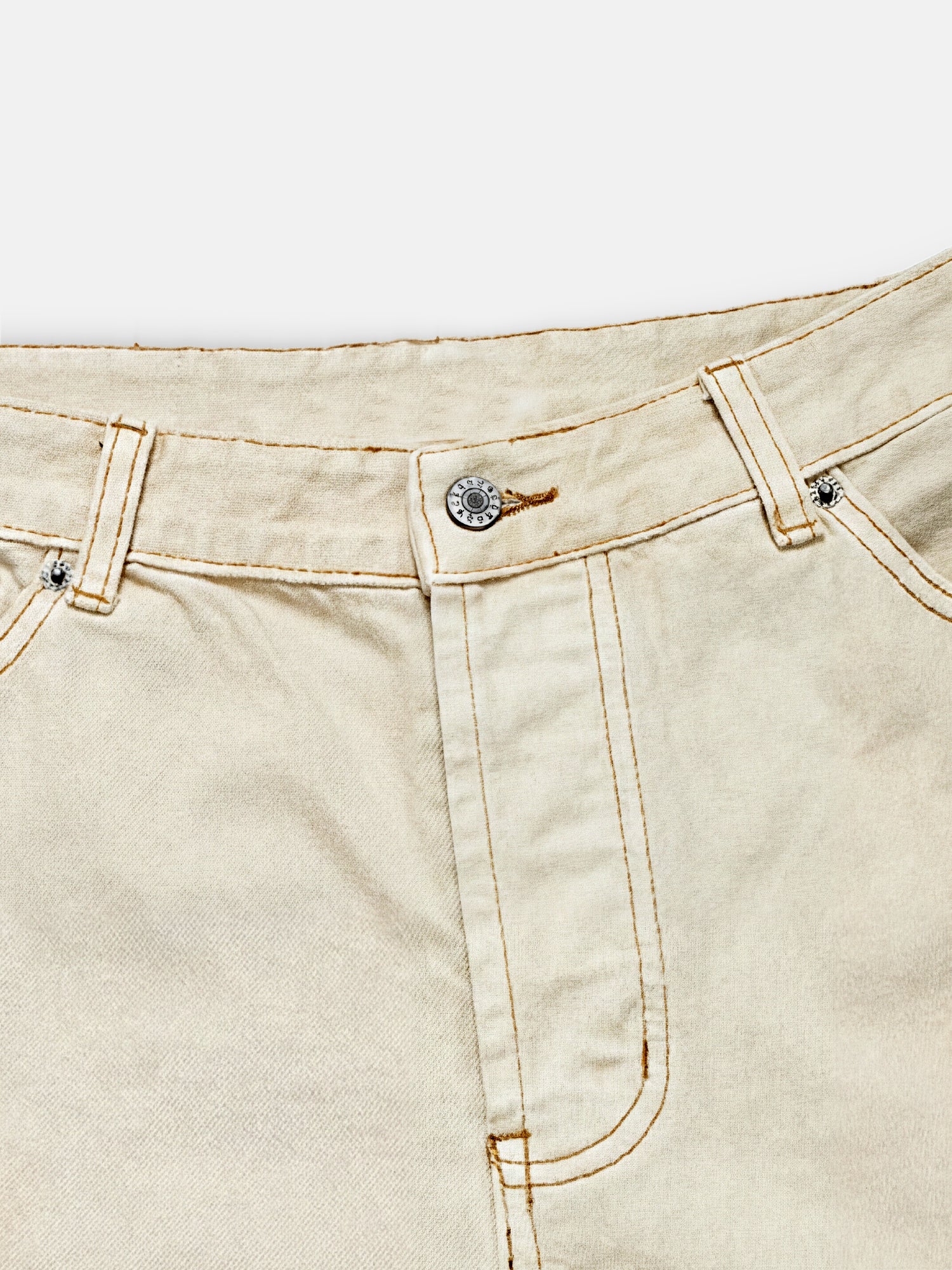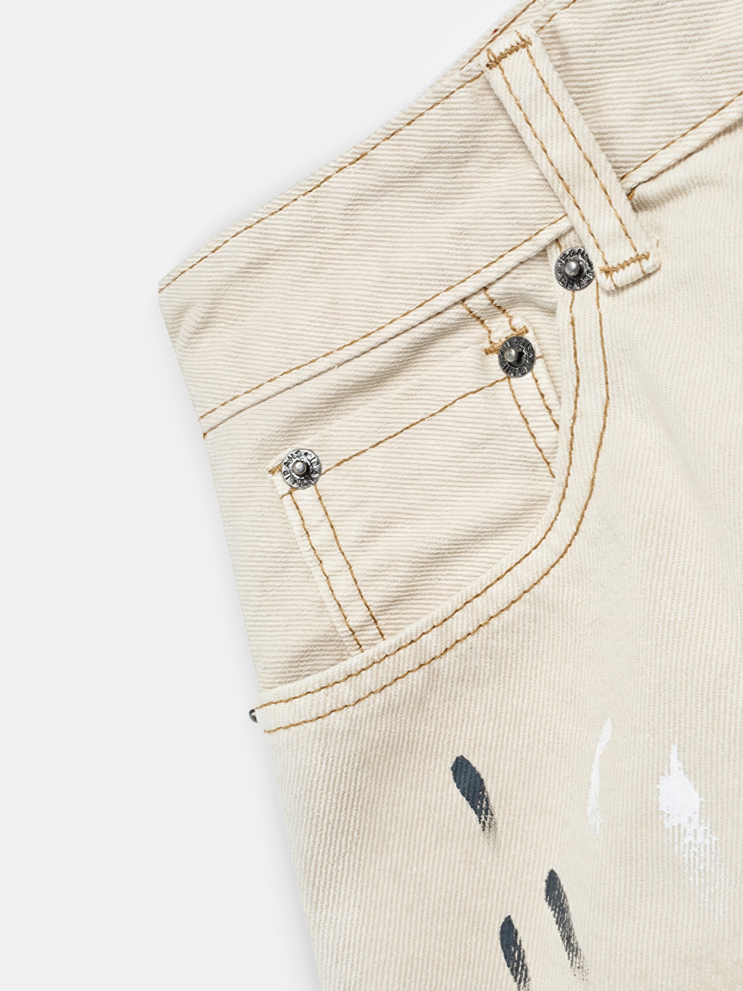 どんなコーディネートにもさりげないエッジと上品さをプラス。リラックスフィットと控えめなペイント風ダメージ加工で、快適さと個性的なルックを両立しました。
