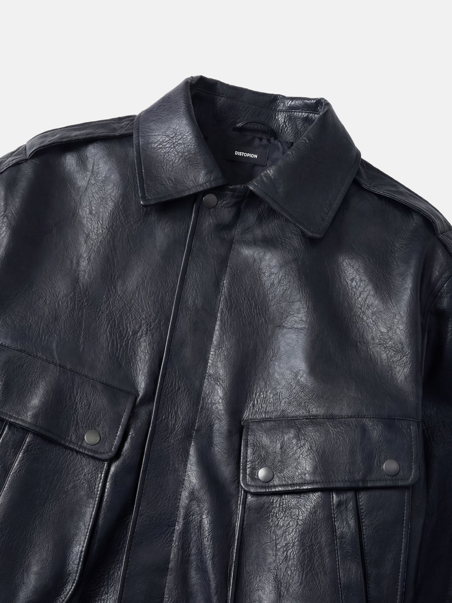 매우 현대적인 실루엣을 통해 세련된 단순함을 구현합니다. 부드럽고 고급스러운 인조 가죽으로 제작되었으며 은은한 질감의 광택이 특징인 이 재킷은 깔끔한 라인과 구조적이면서도 편안한 핏을 결합합니다.
