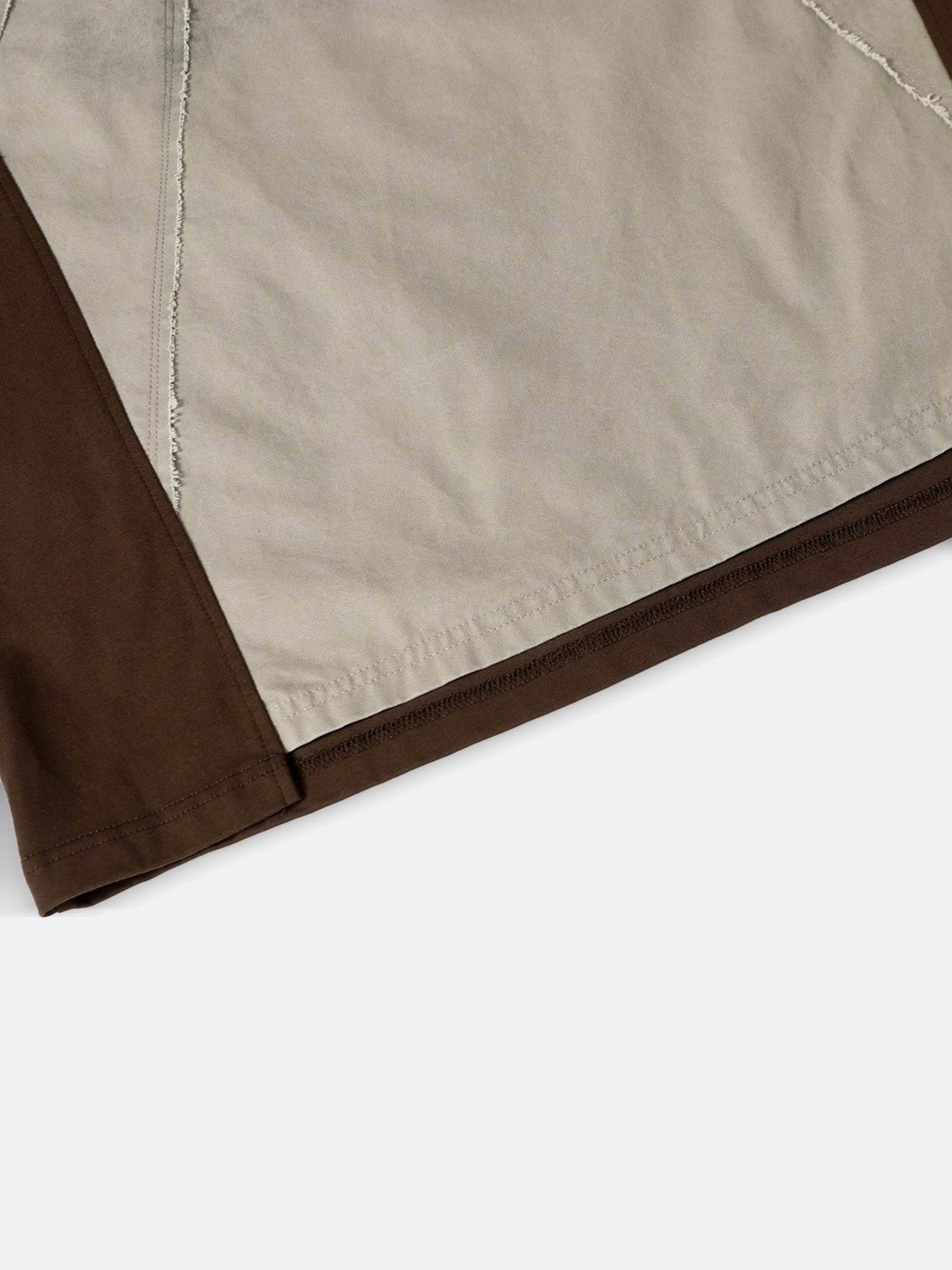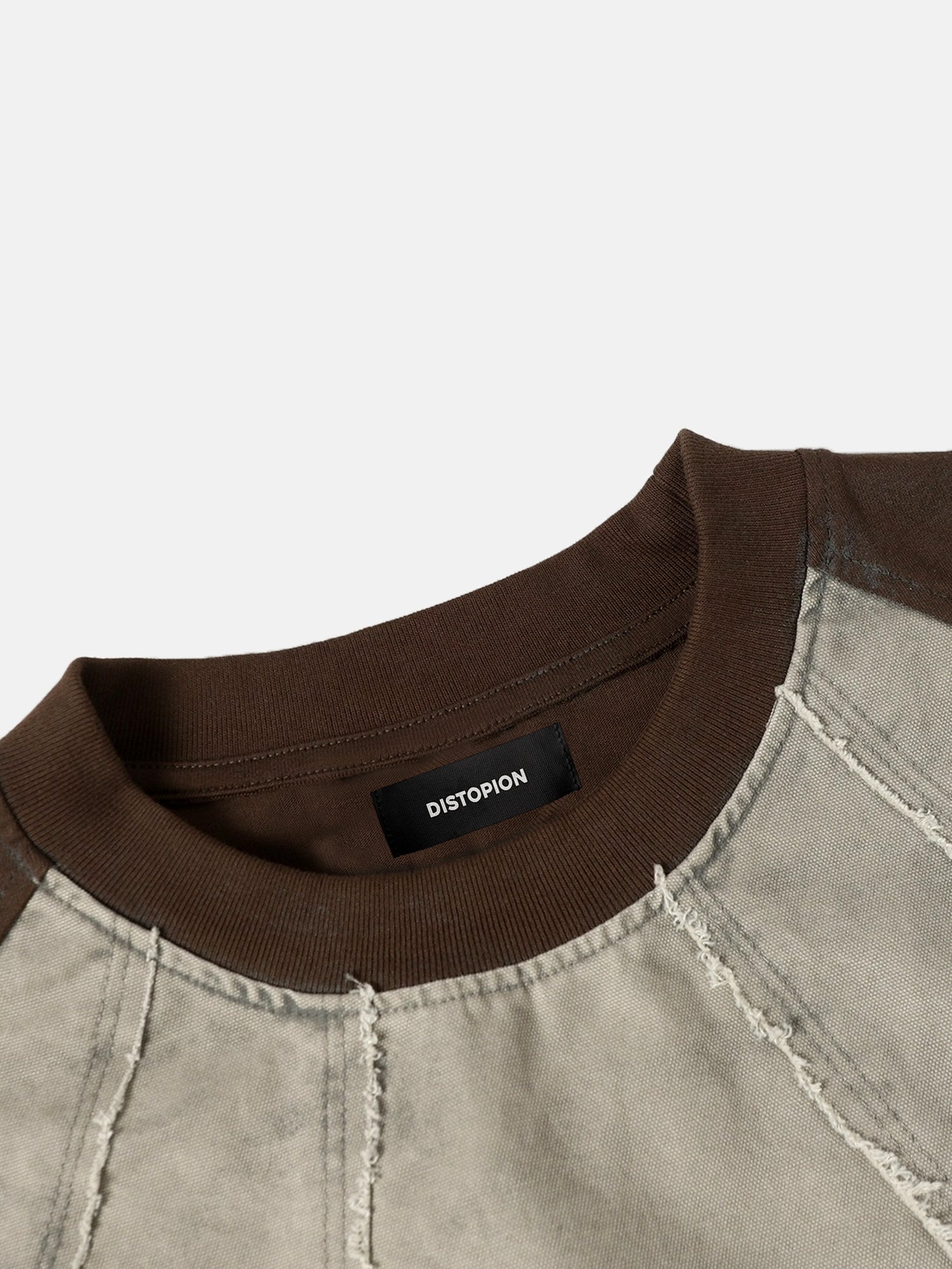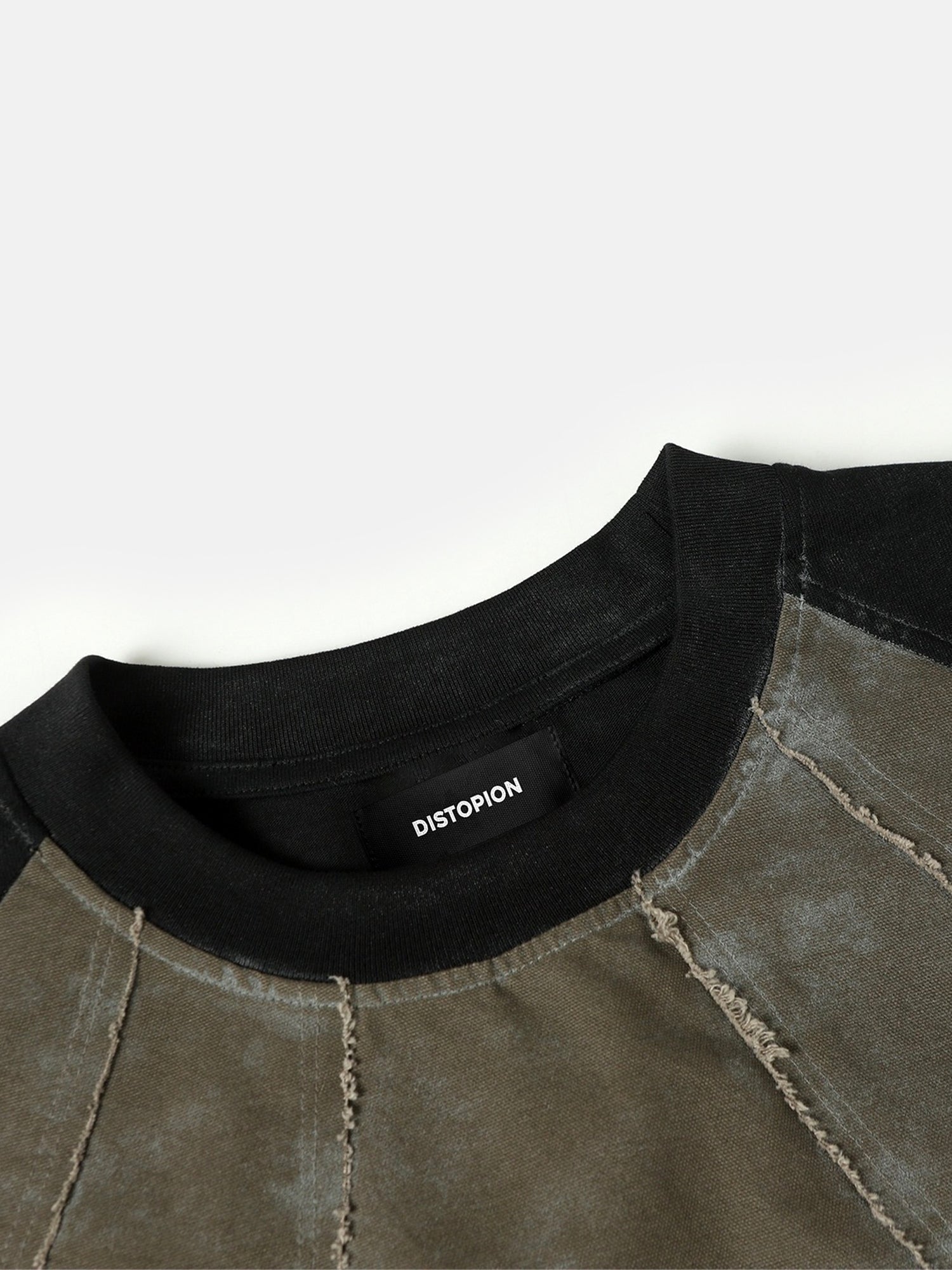 Reclaim the wasteland aesthetic. This heavy-gauge tee features aggressive structural panelling and raw-edge detailing for a reconstructed industrial silhouette