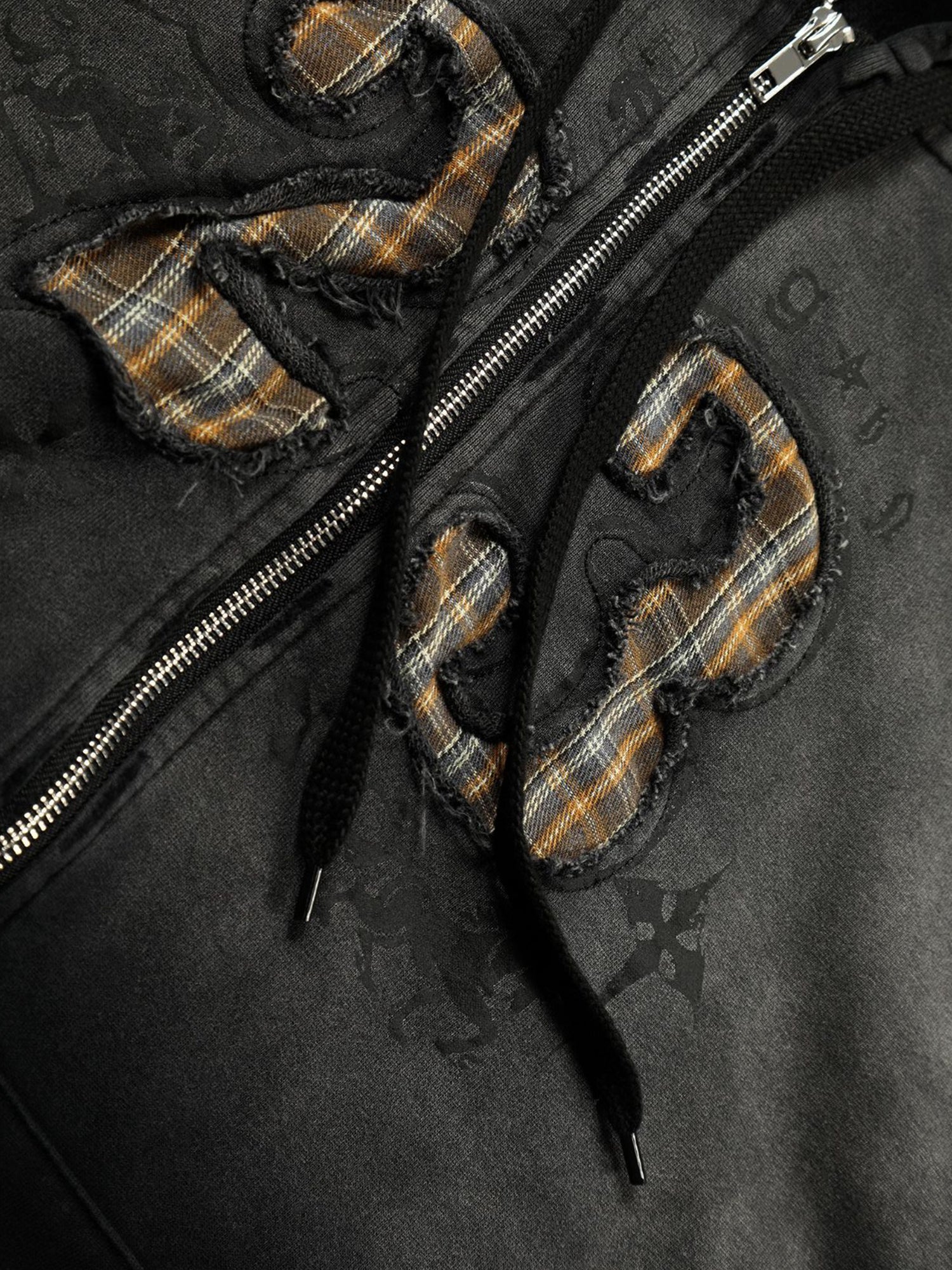 The artifact of a digital era. This heavyweight ombré piece blends weathered industrial textures with high-contrast hardware.