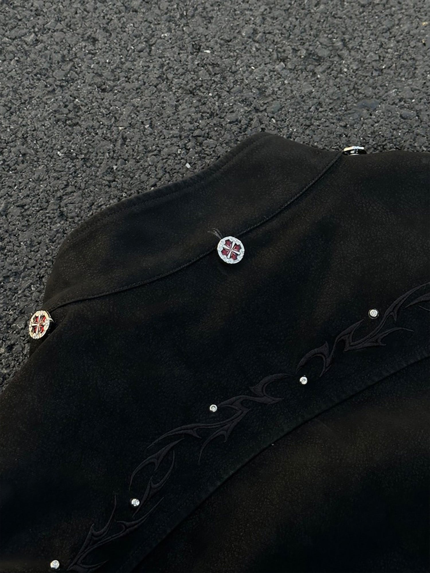 Command the cold with a heavyweight fusion of luxury and aggression. The plush fur interior creates a thermal sanctuary, while the studded thorn embroidery warns others to keep their distance.