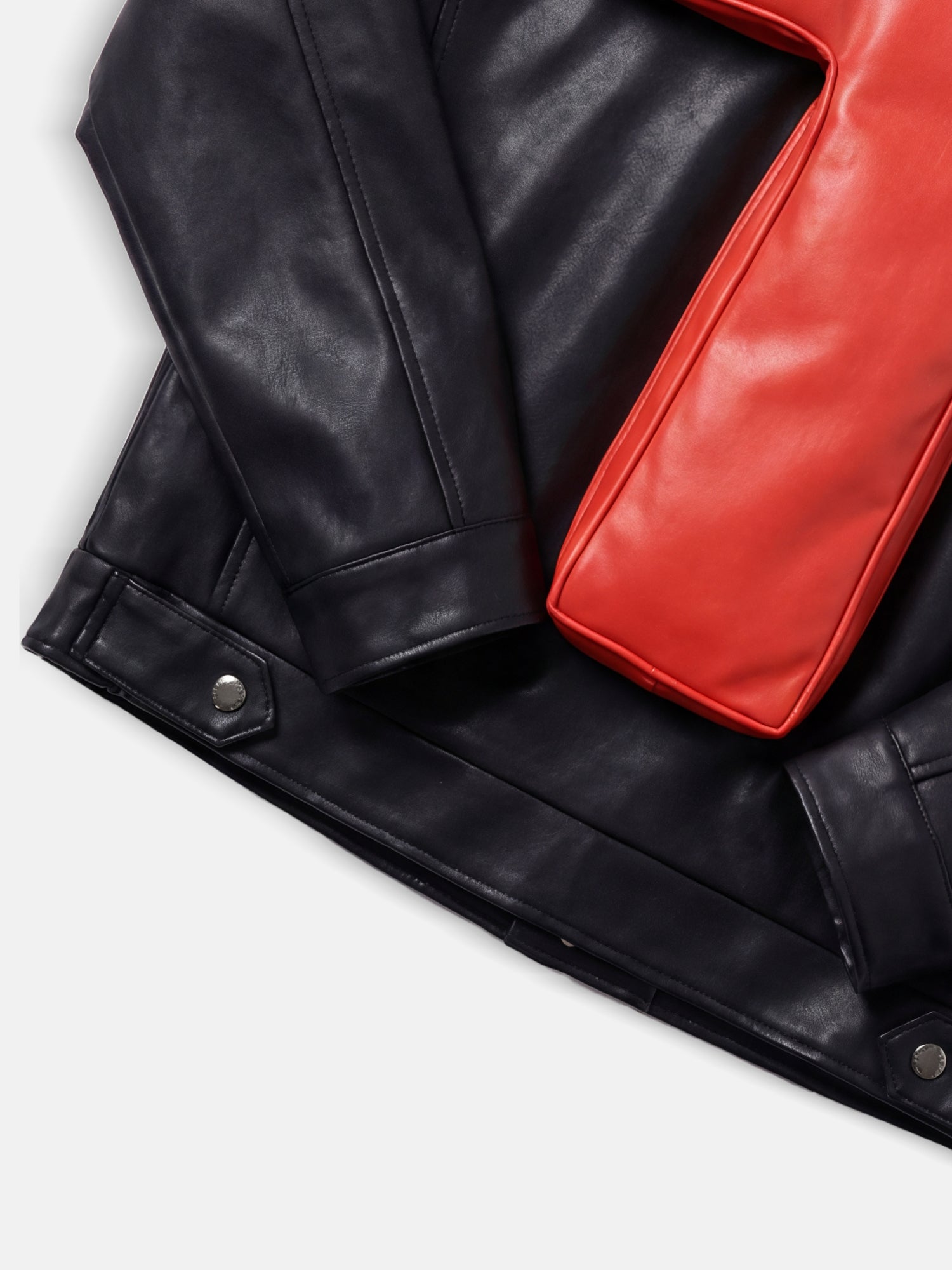 Den slanka dragkedjan framtill och den skarpt skurna kragen bevarar dess skarpa silhuett, och förenar streetwear-attityd med ockultinspirerad estetik.